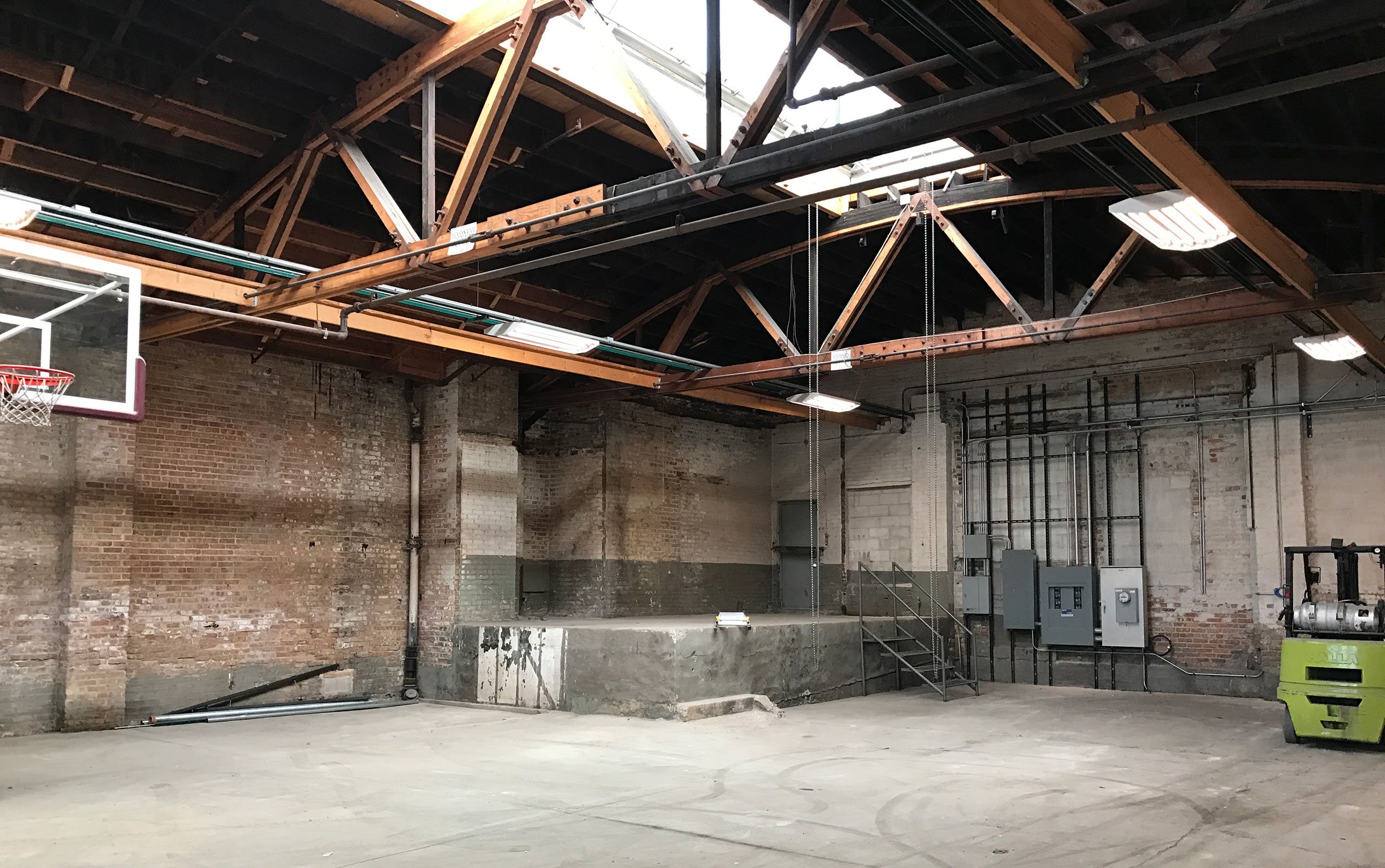 Restored mezzanine with new stair and rails.