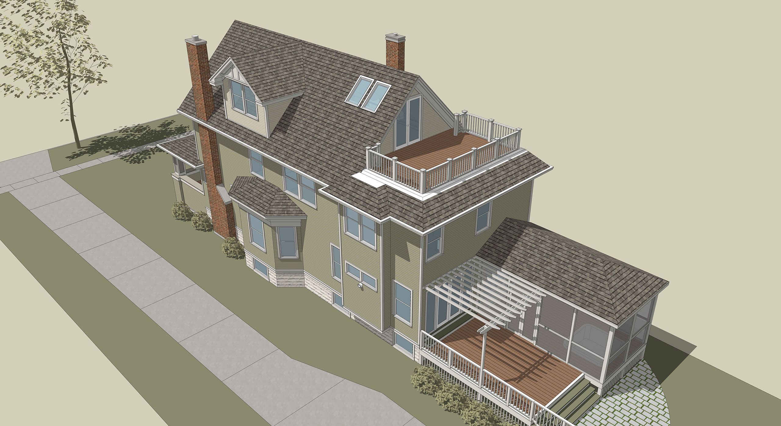 WDN Architecture added nearly 1,300 square feet of living space to this River Forest home. The entire existing interior was gutted to provide four levels and 4,350 square feet of space. 6 Bedrooms, 4.5 baths, Walkout Roof Deck, Two Family Rooms, 3-Season Porch, Large Rear Deck, New Garage and more.