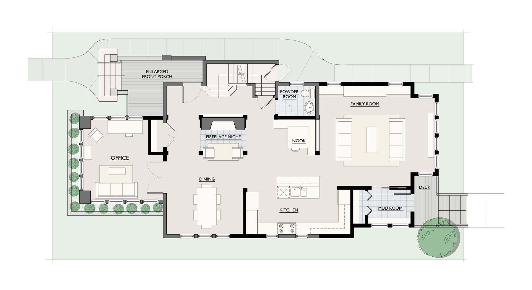 The interior of the home was gutted and rebuilt with rich oak trim and built-ins.